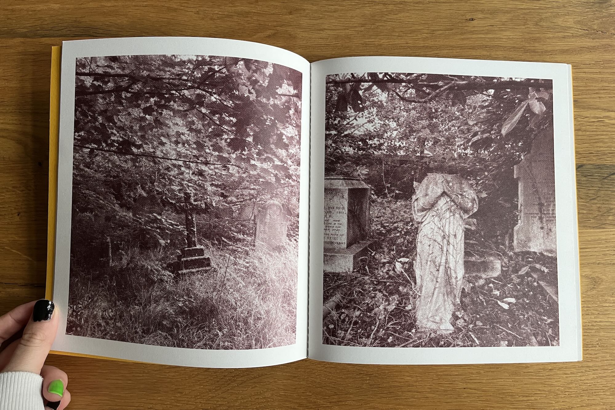 The first and only title I got at Polycopies is Noema by Michael Swan, published by my faves Kult Books. In Noema, Michael Swann explores the aura of place and the nature of religious experience through the Marian apparitions reported in Garabandal in 1961 and Medjugorje twenty years later. Combining his own photographs with stills appropriated from footage of the visionaries in ecstasy, he highlights the gap between inner spiritual experience and what can be visually documented. Reflecting on his own lost faith, Swann wonders whether a profound encounter—like those claimed by the visionaries—might allow belief to return.